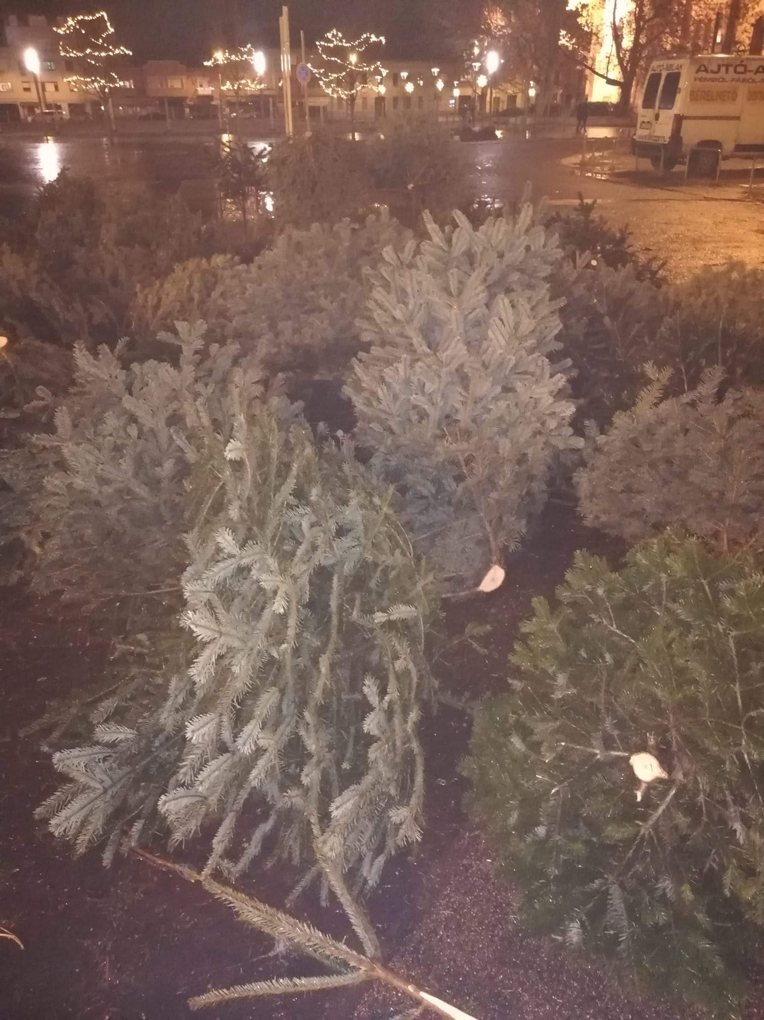 A szeretet ünnepén a "kedves" fenyőfa árusok itthagyták az újpesti főteren a fákat. De, hogy a rászorulók még véletlenül se vigyenek haza egyet a családnak, darabokra vágták az összeset. Remélem, most baromi büszkék magukra, és boldogan telik nekik az ünnep!